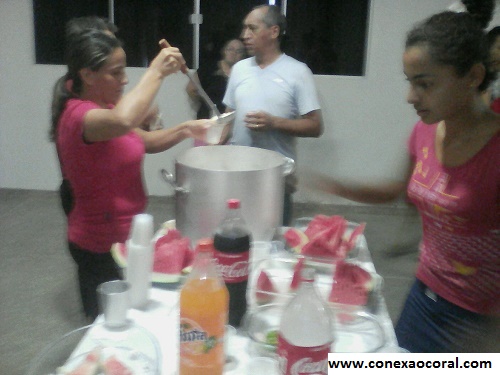 | Irmã Rogiana servindo o coquetel de frutas |
