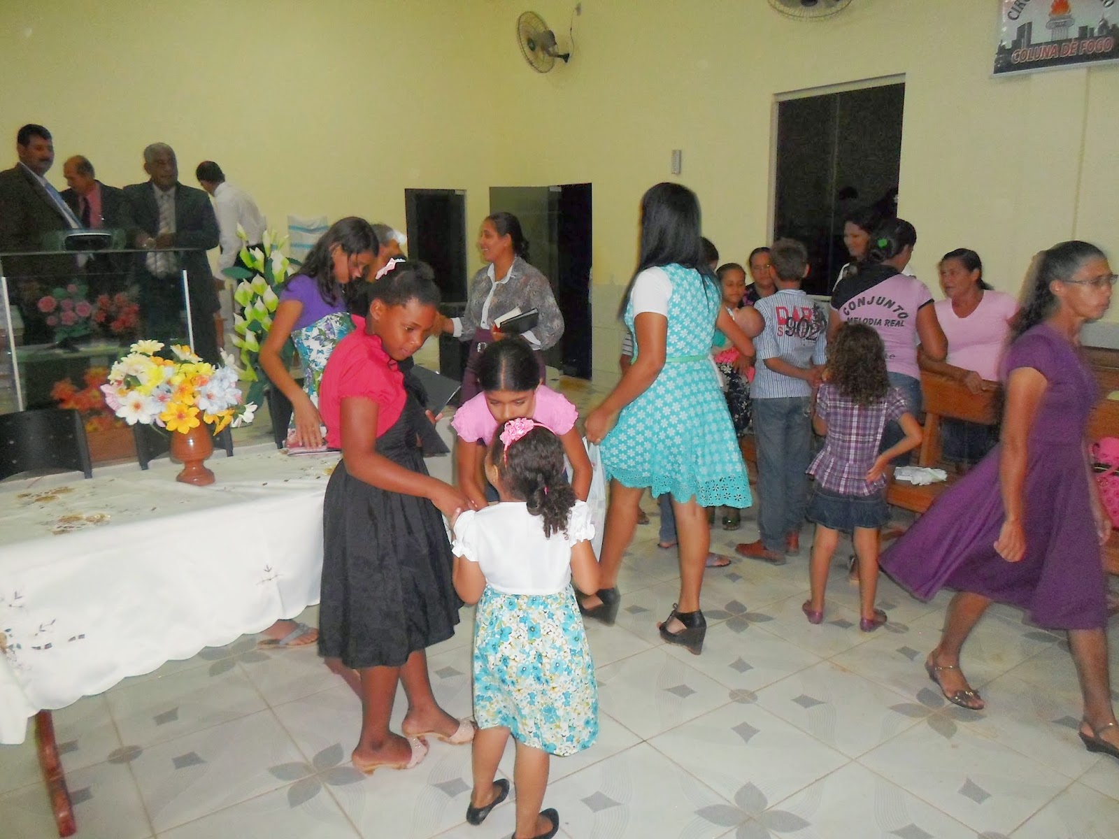 No dia 27/11, depois de quase sete meses congregando no pátio coberto do templo, os crentes puderam se reunir no templo principal, já no piso superior. Foi um momento muito feliz, pois só os irmãos que participaram da construção e dos ajustes finais dessa obra podem falar da correria, incertezas e, por fim, da vitória em entregar o salão pronto para o culto. Nesse dia, após a cerimônia civil da entrada das bandeiras e execução do Hino Nacional, as crianças fizeram sua participação no culto louvando e marchando para a glória de Deus! Verdadeiros soldadinhos de Jesus. Pastor Rogério, da cidade de Ariquemes, ministrou a Palavra nessa noite.